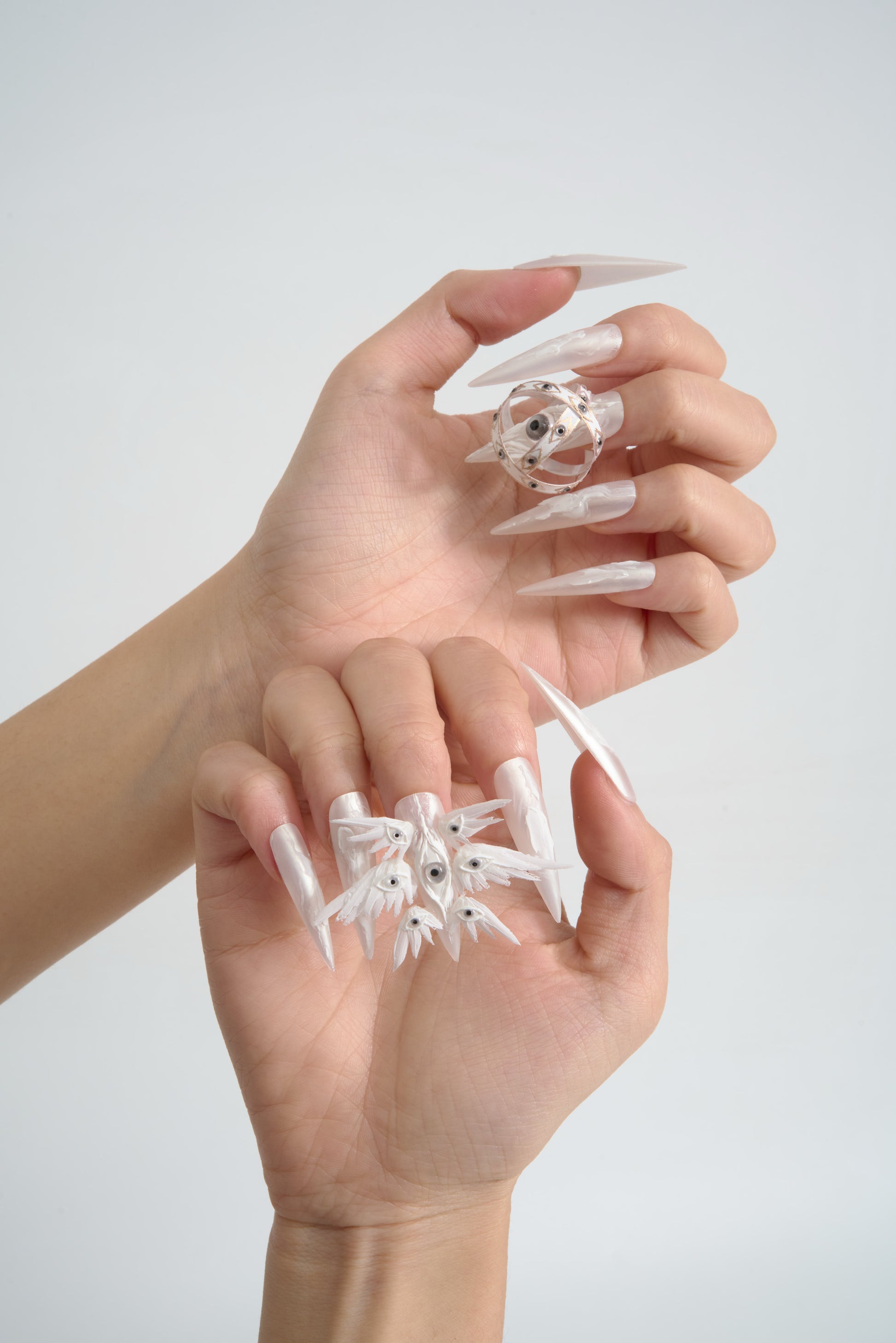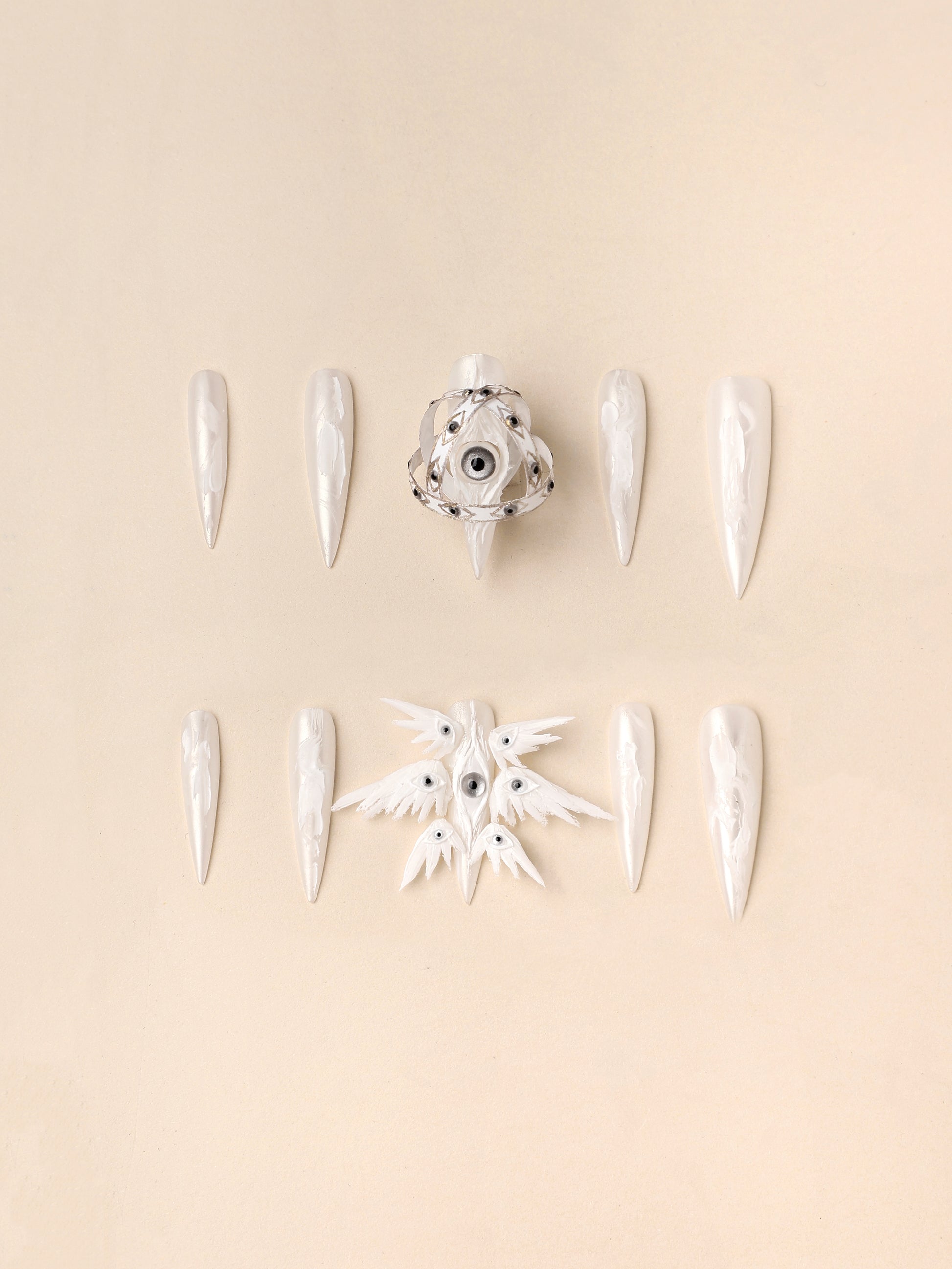 WEARING IT, ITS WHITE FEATHERS WILL ABSORB THE ANXIETY AND CLUTTER ENTANGLED IN YOUR MAGNETIC FIELD, BRINGING YOU PEACE, WHILE THOSE GAZING EYES ARE "MIRRORS OF INNER REFLECTION"—ALLOWING YOU TO COMPLETE A WORDLESS RITUAL OF SPIRITUAL PURIFICATION THE MOMENT YOU RAISE YOUR HAND.